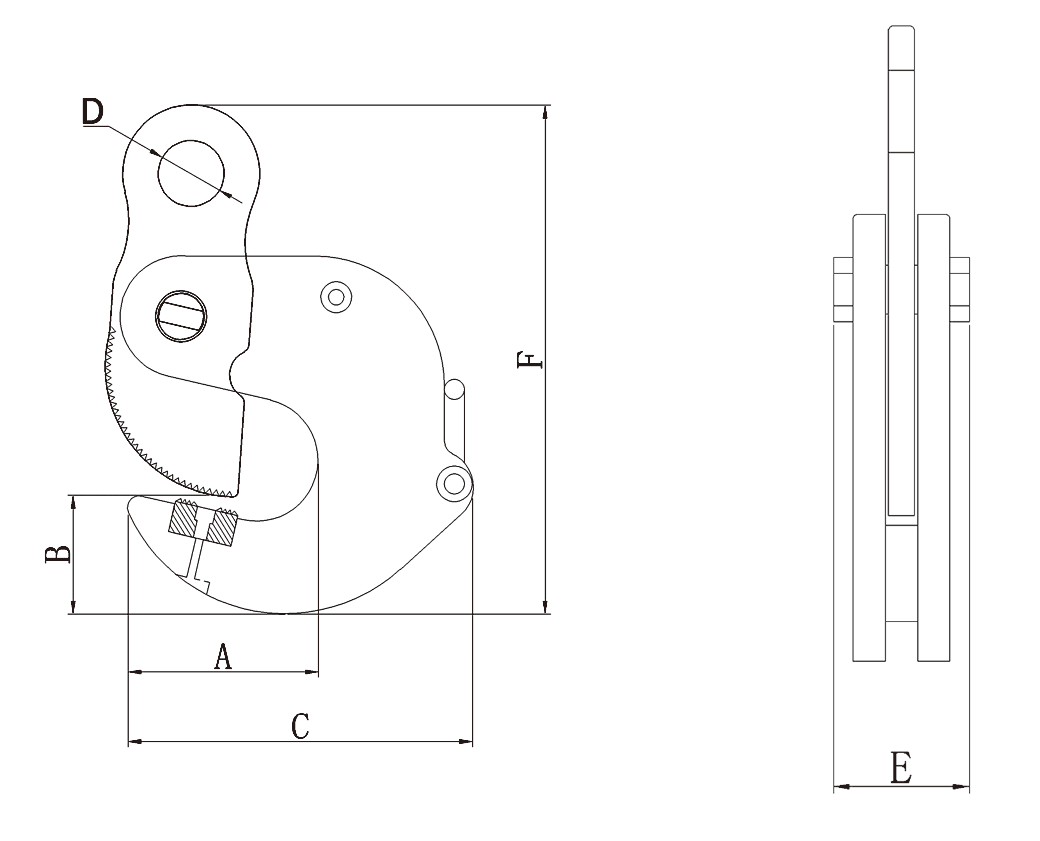 1.适用于钢板的水平吊运及钢板和型钢的翻转。 2.吊运过程不得碰撞被吊物。 3.单只翻转钳允许起吊的最大重量为额定载荷,吊装作业可单只使用。 4.水平吊运必须加横梁。 5.试验载荷